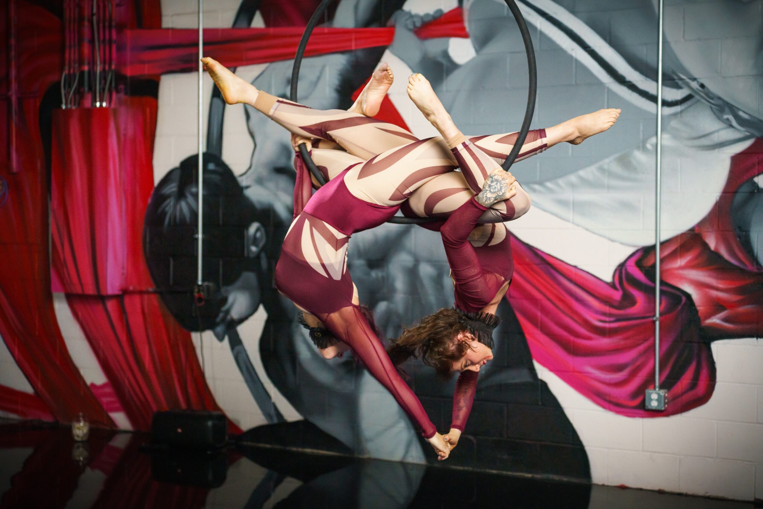 I’ve been interested in flexibility, dance, and aerial for as long as I can remember. I started more formal training in my 20s, so when I had the chance to purchase an existing aerial arts studio in 2019, I was ready and excited to make the leap. Her studio had half a dozen students, but over the past 6+ years, we’ve got a student mailing list of over 3,000. And I recently opened a dedicated space in our second location in Merrifield. The first space is part of a community space with sublets.