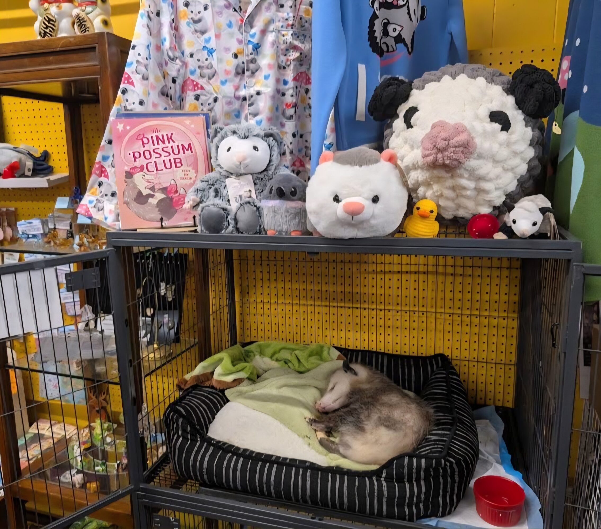 After getting out of the military (AF) in 2001, I started what would become a 20-year career in government security. As things changed, as things do, I no longer felt fulfilled in that line of work…enter opening a “possum shop” in 2022. Some people thought I was crazy to walk away from the security and stability of government work, but it felt right. I had begun to do education programs with the opossums three years earlier and I felt drawn to the education component of it. I had never wanted to be a teacher, but found that I actually enjoyed teaching children and adults alike about these quirky and misunderstood marsupials. Opening a brick and mortar store where people could not only shop for cute opossum merch and local art, but also physically get to meet one of the ambassadors five days a week seemed like the next step.