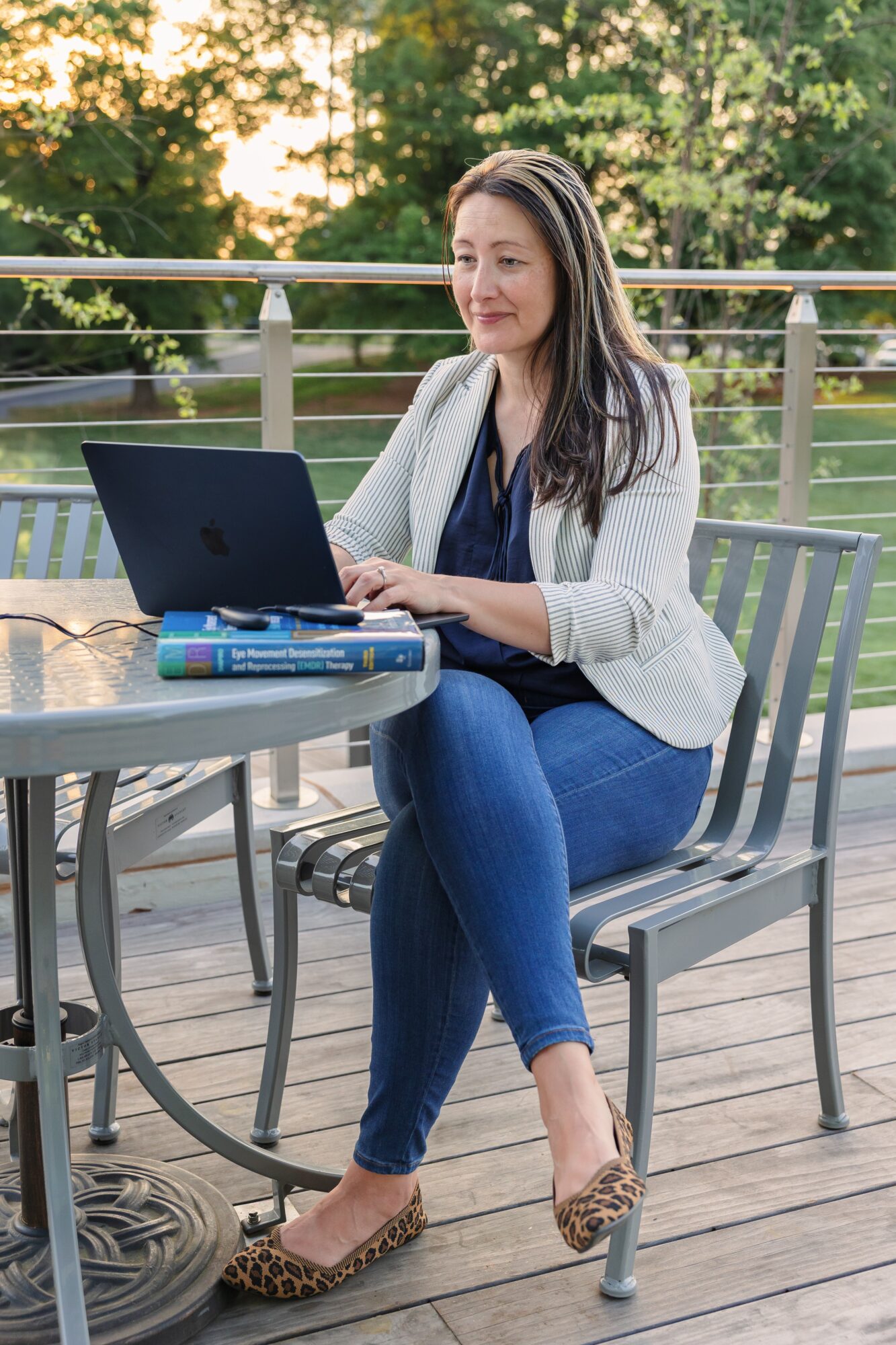 I’m also fortunate to collaborate with Jennifer Rodrigues, a gifted yoga therapist, fellow military spouse, and friend. Together, we’re creating somatic and body-based resources that complement EMDR and talk therapy, giving clients and clinicians additional ways to engage with healing beyond words alone. These tools focus on the connection between mind and body—helping individuals learn skills for grounding, emotional regulation, and self-awareness so they can deepen their healing journey. Our aim is to meet people where they are and offer practical, compassionate resources that support lasting growth and resilience.